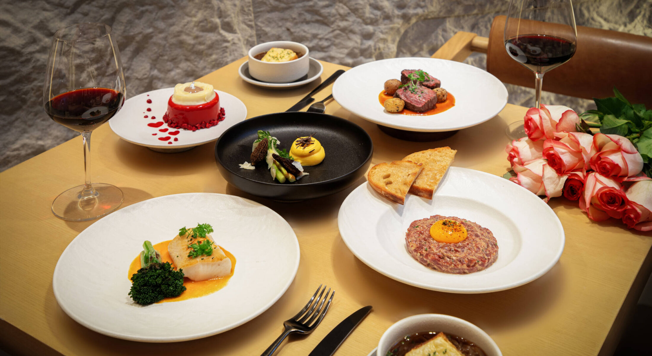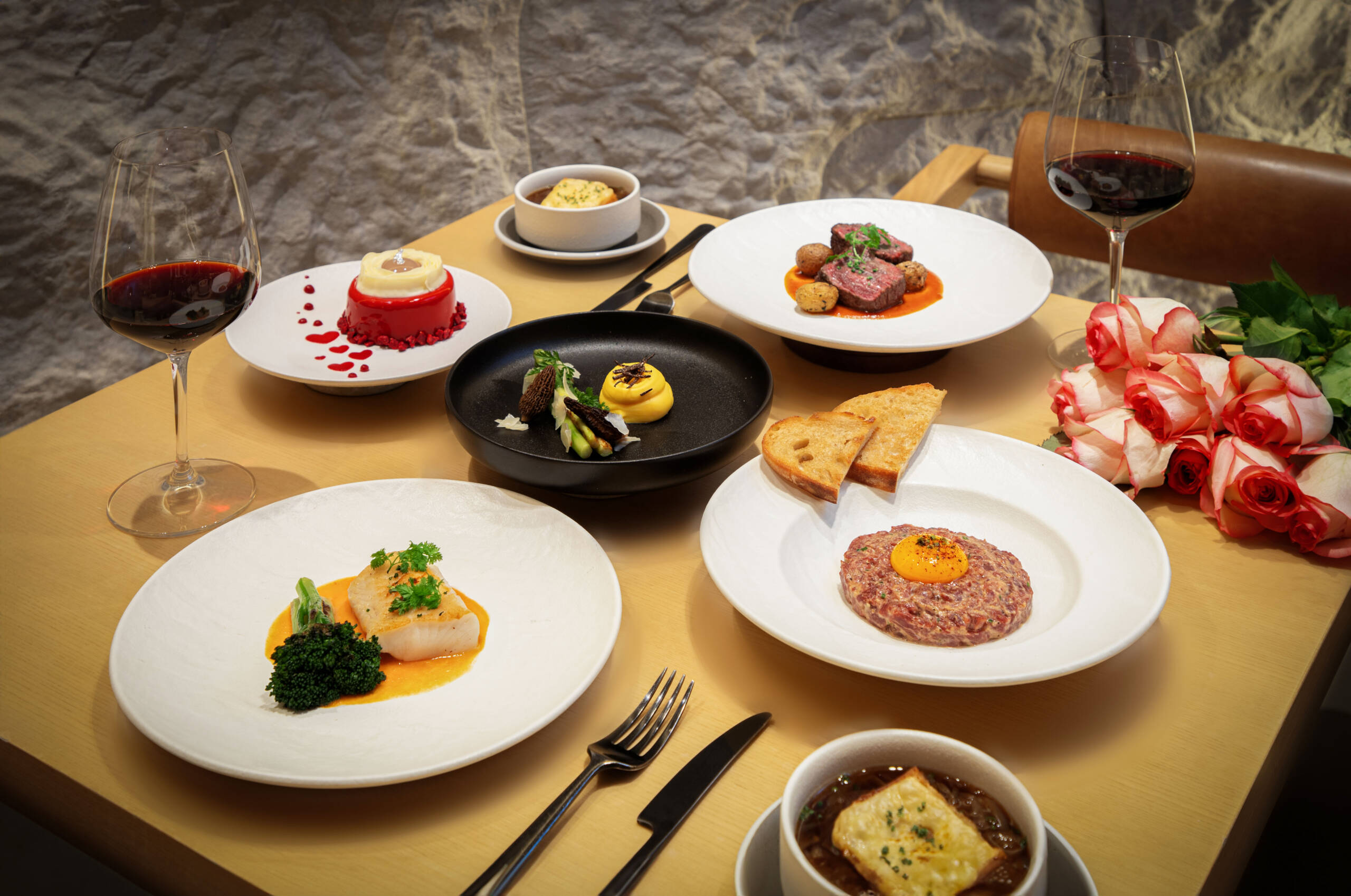 从松露风味芦笋、经典牛肉他他至香煎和牛牛柳,精致的美食之旅在TANGRAM缓缓展开,搭配手中美酒,味觉交错之间,以玫瑰茶甜品点缀尾声。